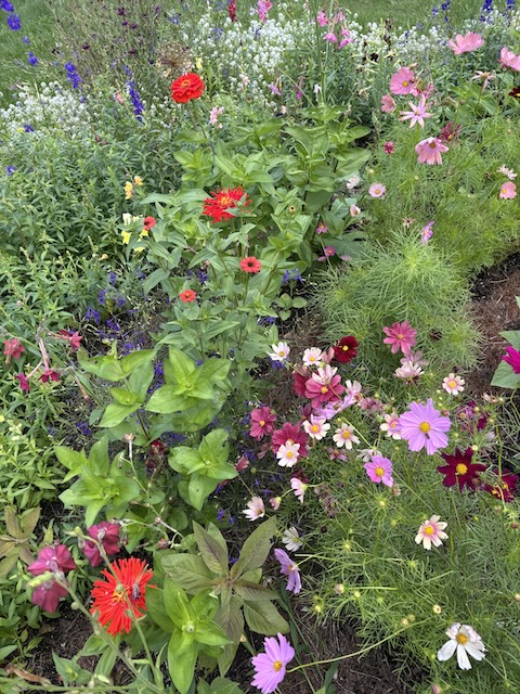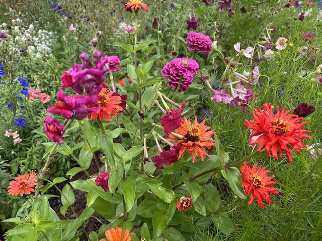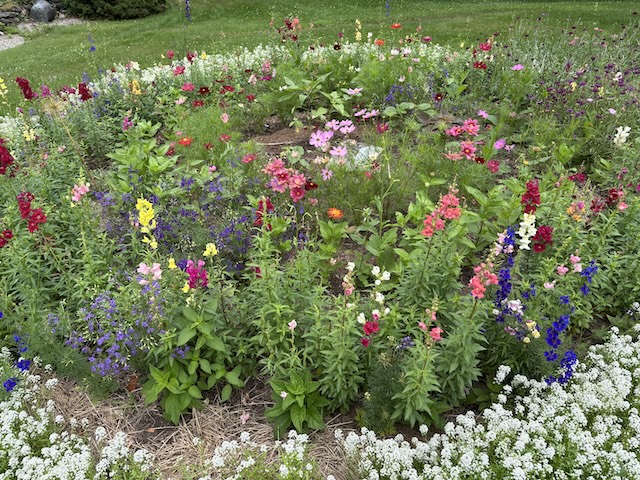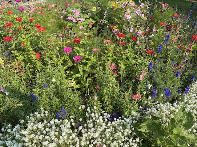 You are Loved– This year’s Venus Garden was an exuberant spiral beginning in the center then spiraling out with Sunflowers, Amaranth, Cosmos, Zinnias, Nicotiana, Larkspur, Heliotrope, Corn Cockle, Cornflower & Snapdragons primarily in shades of pink, red, purple & blue. All these Flower friends were encircled by a ring of Sweet Alyssum. In early summer when ample rain fell, the garden was radiant and lush. Then we joined much of the world in drought. No rain fell for several months, and we had to ration our water. This garden had to keep going without us watering it. Even as foliage wilted, all the Flowers prevailed with a sparkle, but most noticeable was the Sweet Alyssum holding its energy of divine consciousness and generously cradling the whole garden in abundant blooms. This Essence supports us to persevere, but most importantly, to know we are cradled with immense love by beings seen and unseen regardless of the environments we must grow in. YOU ARE LOVED. You can count on it.